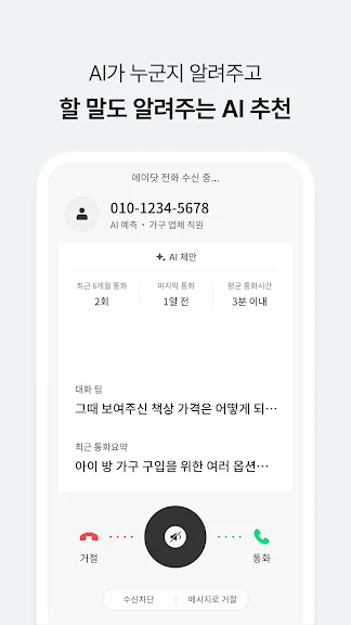 어디서 온 전화인지, 다음에 무슨 말을 하면 좋을지, 요즘 상대방과 어떤 대화를 나눴는지 등 AI가 전화에 유용한 정보를 추천해드려요.