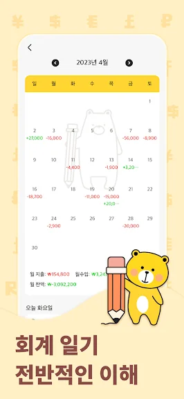 - 캘린더에서 실시간으로 가계부 확인 가능