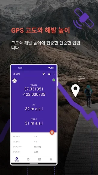 🌍 고정밀 고도 및 해발 높이 추적: 스마트폰의 내장 GPS와 Wi-Fi 네트워크를 활용하여 탁월한 정확도로 현재 고도와 해발 높이를 원활하게 모니터링합니다.