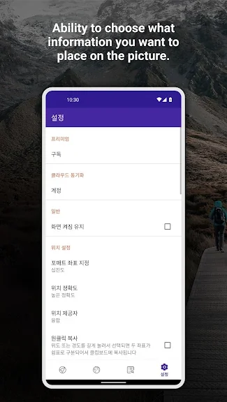 📷 지리적 태그가 있는 추억을 포착하세요: 위치 데이터가 내장되어서 표시되는 사진을 즉시 촬영할 수 있습니다. 위치 데이터의 위치, 색상, 크기를 조정하여 개인 취향에 맞게 이미지를 맞춤 설정할 수 있습니다.