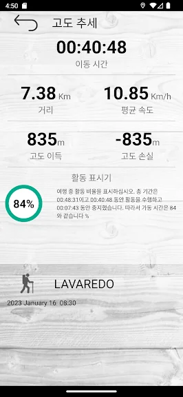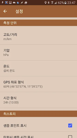- 기록된 히스토리 차트를 통해 여행 고도 게인 값을 확인할 수 있습니다.