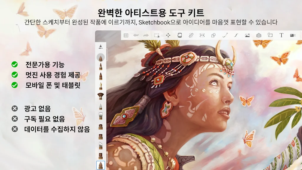 SketchPro (스케치프로) 에는 창의적이고 전문적인 그리기 기능이 탑재되어 있습니다.