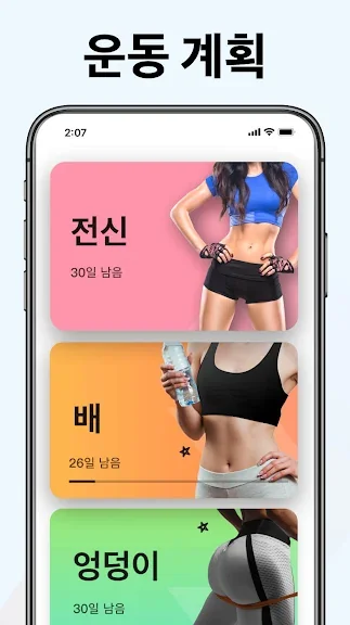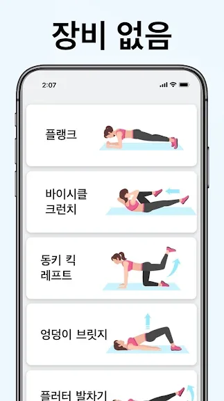 규칙적인 운동으로 주요 근육을 단련해 멋진 몸매를 만들어보세요. 헬스장 또는 값비싼 피트니스 트레이너가 필요 없습니다. 집에서 하는 간단한 운동으로 체중을 감량하세요!