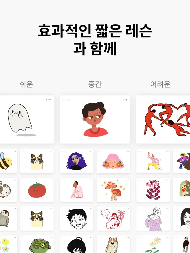 게임과 같은 방식으로 그리는 법을 가르치며, 당신의 성과를 평가합니다.