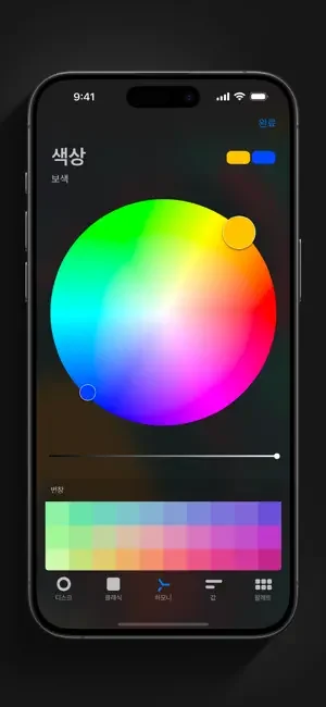 • 디스크, 클래식, 하모니, 밸류 및 팔레트 색상 패널