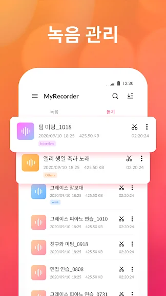 아래는 음성 녹음 어플에 대한 스크린샷 정보입니다.