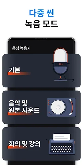 음성 녹음, 회의, 강의, 음악 및 원음모드로 빠르게 전환이 가능하며, 쉬운 설정과 프리셋을 사용 할 수 있습니다.