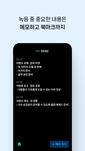 녹음 중 기억하고 싶은 내용이 있다면 바로 메모해 두세요.