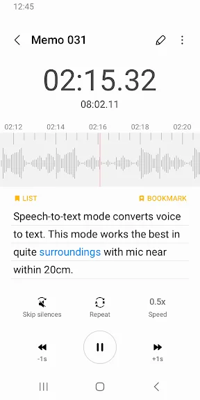 [음성메모] 녹음 중에 말한 내용을 글자로 보여줍니다.