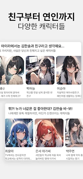 친구부터 애인도, 판타지부터 장르물도 마음껏 자유롭게 대화해보세요.