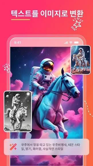 디자인이나 AI 기술이 없으신가요? 문제 없습니다! 당신의 아이디어를 설명하면, 우리의 AI가 즉시 당신의 비전을 실현합니다. 워터마크, 스티커, 맞춤형 장면 – 당신이 상상하는 모든 것을 AI가 몇 초 만에 만들어 드립니다.