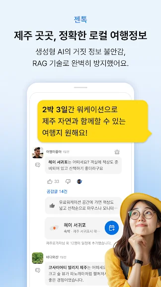 생성형AI는 정보는 믿을 수 없다구? 젠트립의 지역 데이터베이스를 통해 개발된 RAG 모델은 잘못된 장소와 위치를 완벽히 제거하여 숨은 여행지와 지역의 상권을 정확한 정보로 제공합니다.