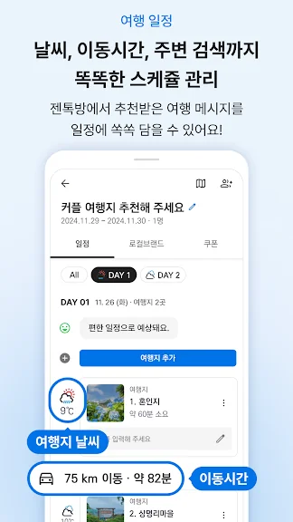 꼭 가야할 플레이스를 일정에 추가하면 이동시간을 자동으로 계산해드립니다.