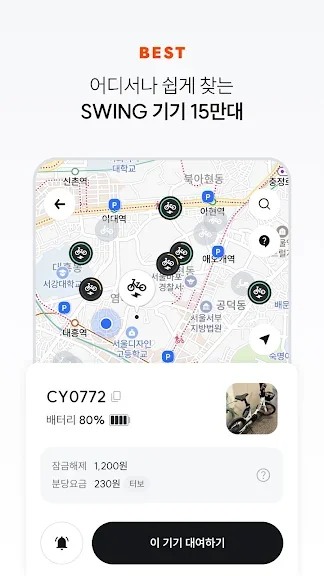 아래는 스윙 SWING - 킥보드, 자전거, 택시 어플에 대한 스크린샷 정보입니다.