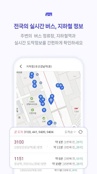 - 목적지까지 가는 경로에서도 실시간 도착정보를 쉽게 확인할 수 있어요.