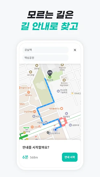- 실시간 위치기반의 길 안내 모드로 경로를 따라가면, 언제나 자신 있게 목적지에 도착할 수 있어요.