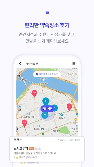 - 약속 장소 찾기로 중간 지점과 주변 추천 장소를 간편하게 찾고 일정 등록, 장소공유로 만남을 쉽게 계획해 보세요