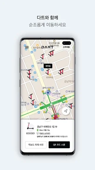 아래는 다트(DART) - 전동 킥보드 공유 서비스 어플에 대한 스크린샷 정보입니다.