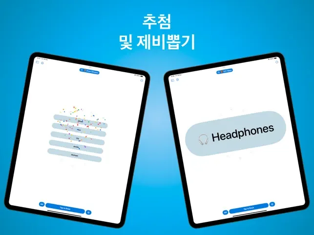 학교, 직장, 모임에서 '추첨이'를 켜고 분위기를 업시켜보세요!