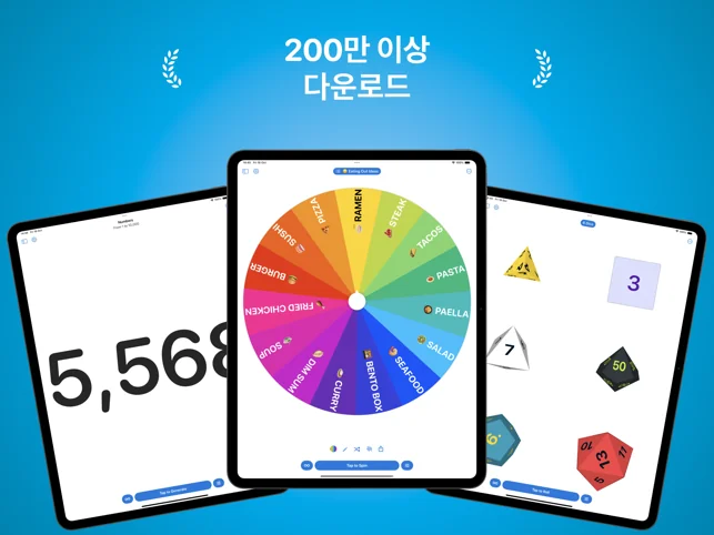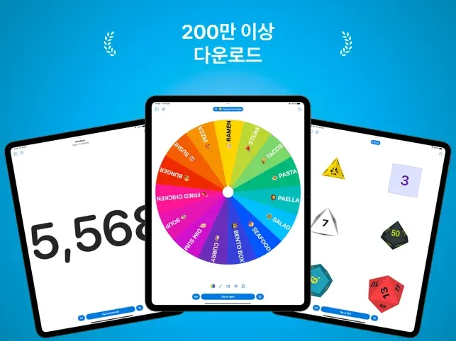 모든 결정을 위한 맞춤형 휠 생성 - 음식 선택, 영화 선택, 당첨자 선정까지. 심플하고 아름답고 완전히 무작위로!