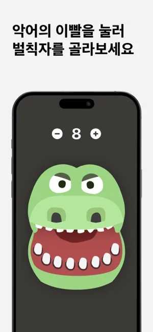 사람 수를 정하고, 악어 이빨을 눌러 벌칙을 수행할 사람을 뽑아보세요.