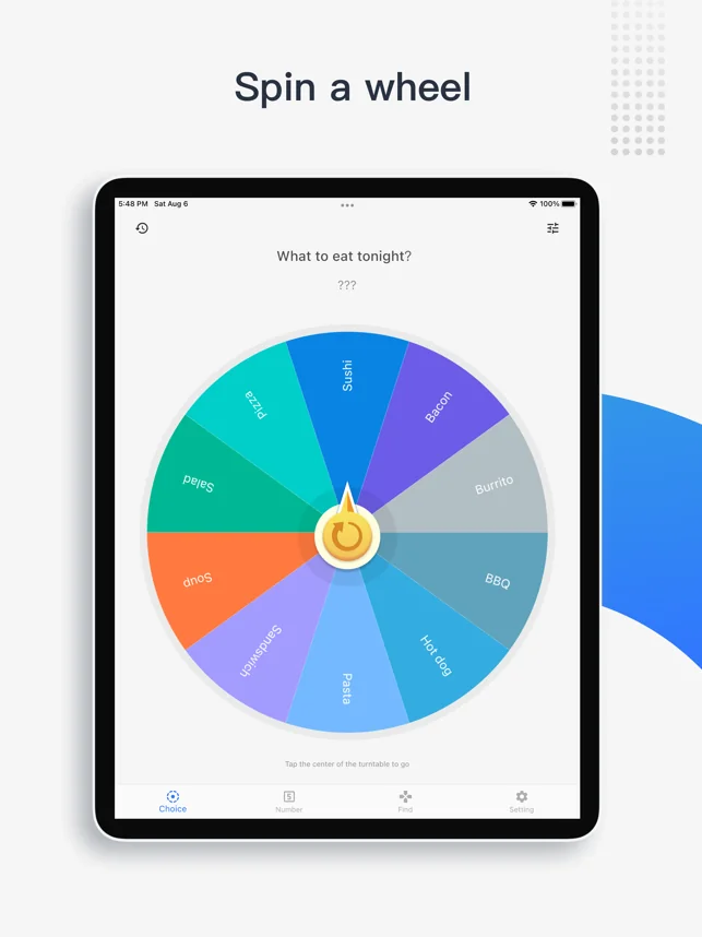• 행운의 룰렛 돌리기: 오늘 밤의 영화를 고르거나 다음 보드 게임을 정하는 데 적합합니다.