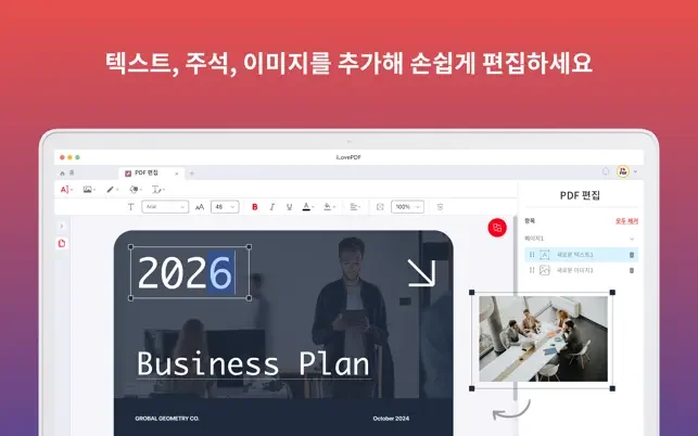 • 시각적 사용자 지정: 직관적인 PDF 편집을 통해 이미지를 추가, 삭제 또는 회전할 수 있습니다.