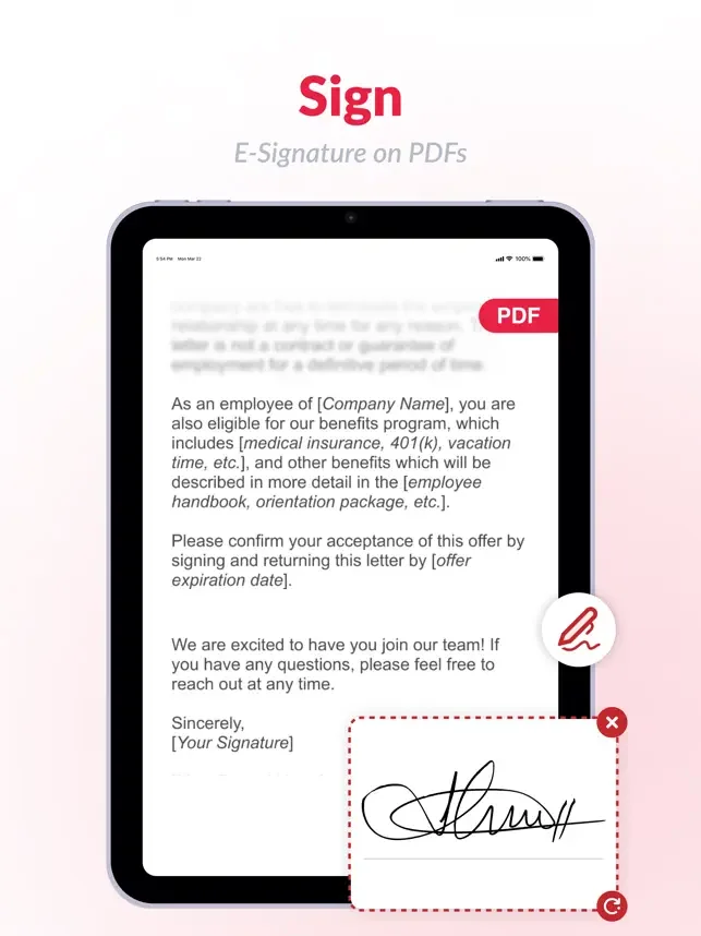 • 몇 번의 탭만으로 신속하게 계약, 계약 및 거래에 전자 서명을 할 수 있습니다.