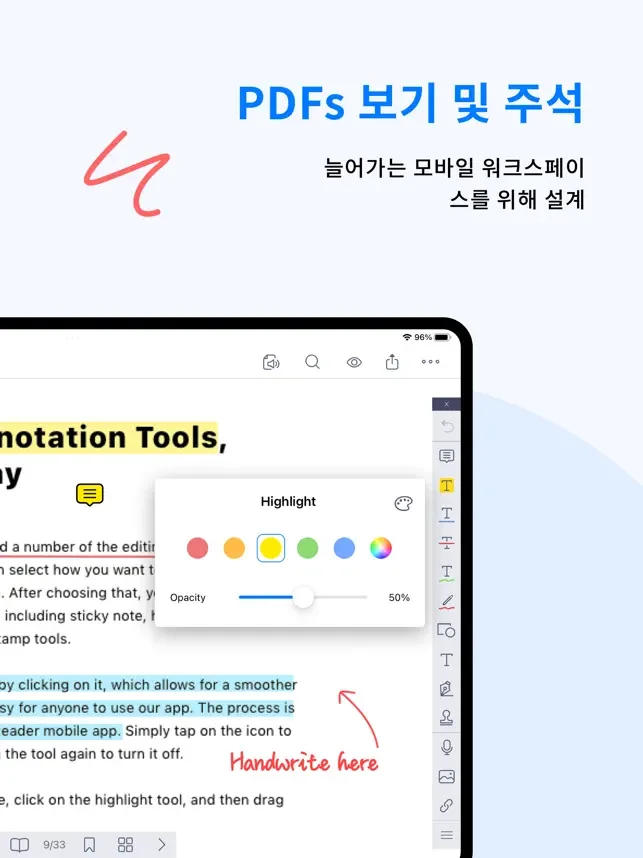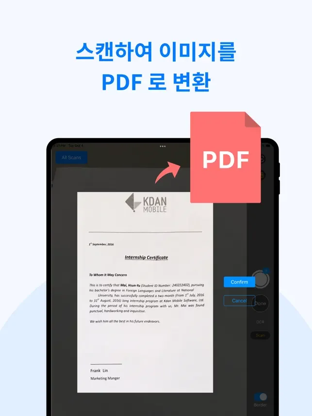 KDAN PDF 리더는 모바일 친화적인 앱입니다. 이동 중에도 PDF를 쉽게 보고, 편집하고, 관리할 수 있습니다. 또한 PDF를 빠르게 변환, 서명 또는 공유할 수 있습니다.
