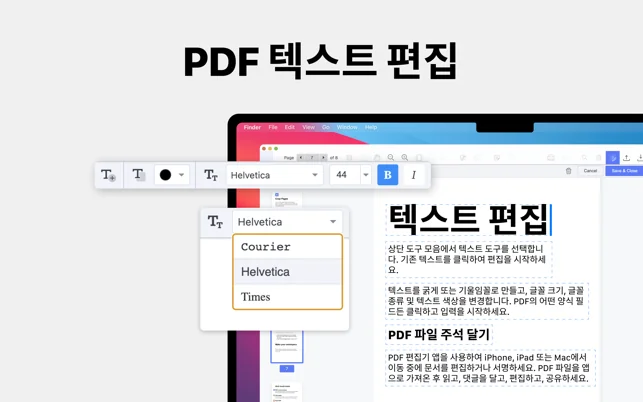 • 오타 없는 정밀도: PDF 편집기로 오타를 수정하고 문단을 쉽게 추가할 수 있습니다.