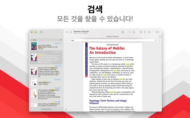 ∙ 완전한 PDF 개요 지원. 개요도 검색할 수 있습니다.