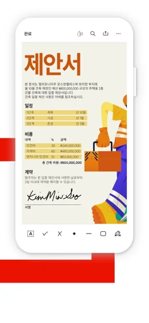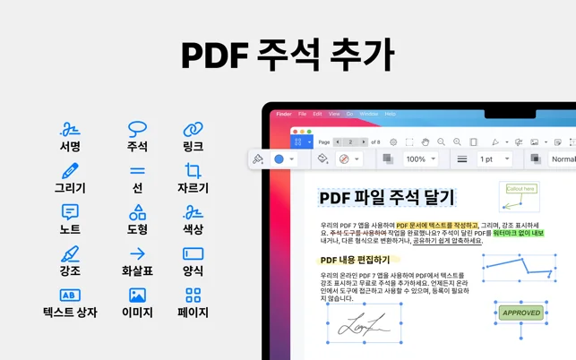 • 다양한 주석 도구를 사용하여 텍스트, 이미지, 날짜, 확인 표시 등을 추가하세요.
