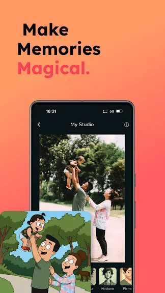 Animize를 사용하면 사진을 손쉽게 멋진 애니메이션 스타일 애니메이션으로 변환하여 부드럽고 향수적이며 영화적인 느낌을 줄 수 있습니다. 캐주얼 셀카, 단체 사진 또는 자연스러운 순간이든, 만화 사진 편집기를 사용하면 동화책의 눈을 통해 그 순간을 생생하게 표현할 수 있습니다.