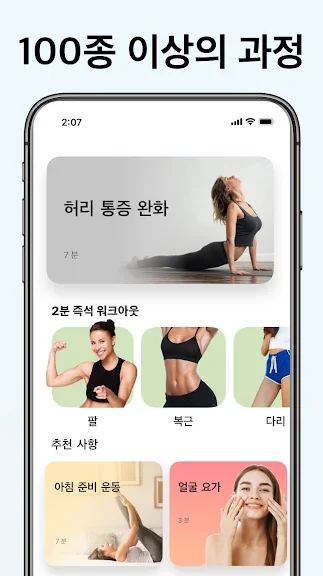 - 전신, 복부, 상하·체와 스트레칭 및 요가 등 다양한 유산소 운동과 근력 운동 동영상 강좌 제공