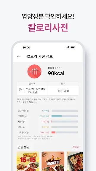 – 모든 음식에 대한 영양 정보를 포함한 칼로리표