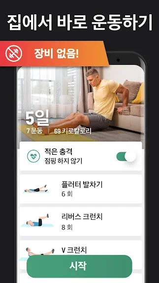 연소된 칼로리와 체중 감량 과정을 그래프로 확인할 수 있습니다. 헬스장에 갈 필요도, 장비도 필요 없어요. 그냥 체중을 이용하는 것만으로도 몸 전체를 탄력 있게 만들고 탄탄한 근육을 만들 수 있어요.