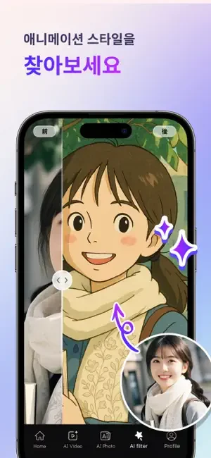 새로운 AI 지브리 스타일을 만나보세요! 탭 한 번으로 사진을 몽환적인 애니메이션으로 바꿔보세요!