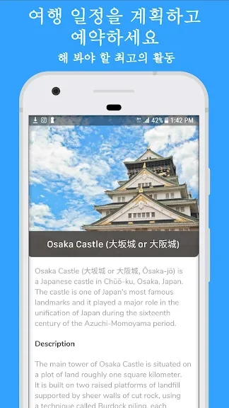 아래는 오사카시 시 여행 안내 어플에 대한 스크린샷 정보입니다.