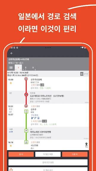2) Japan Transit Planner 어플 스크린샷
