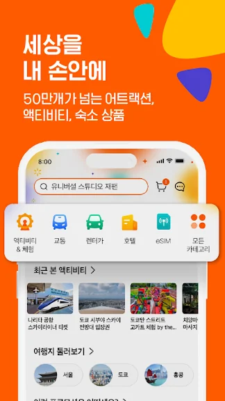 전 세계 400개 이상의 여행지에 10만여 가지의 상품이 준비되어 있어요. 스릴 넘치는 아웃도어 액티비티와 오롯한 휴식을 즐길 수 있는 프라이빗한 호캉스에서 호기심을 자극할 풍부한 문화 체험까지! 즐거움이 가득한 세계로 클룩이 안내합니다.