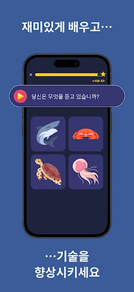 - 새로운 단어를 기억하기 쉽게 하는 이미지와 상호 작용하는 연습! 게임처럼 느껴지는 학습을 즐겁고 쉽게 할 수 있도록 하는 게임화된 인터페이스로 공부하세요.