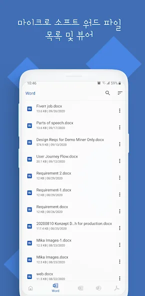 아래는 Docx 리더 - HWP, PDF, Docx, XLSX 어플에 대한 스크린샷 정보입니다.