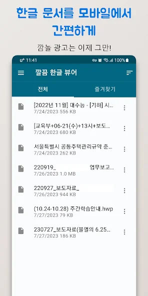 아래는 깔끔 한글 뷰어 - HWP, HWPX 뷰어,PDF저장 어플에 대한 스크린샷 정보입니다.