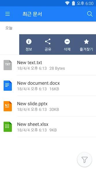 - 즐겨찾기: 즐겨찾기 목록에 파일을 추가하여 빠른 열기 가능