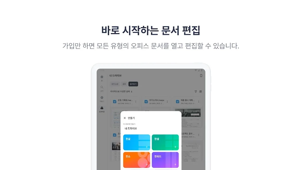 Android에서 최신 한컴오피스를 사용해 보세요.