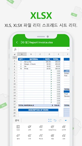 • 앱에서 사용할 수 있는 다양한 템플릿 중 하나를 사용하여 XLSX 워크시트를 즉시 생성하거나 편집할 수 있습니다.