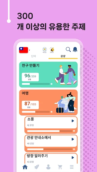 앱을 실행하면 체계적인 학습 과정이 시작됩니다. 단어부터 문장, 실용 회화까지 단계별로 익힐 수 있으며, 원어민 음성을 듣고 발음을 따라 하면서 자연스럽게 언어 실력을 키울 수 있습니다. 직관적인 인터페이스 덕분에 초보자도 쉽게 사용할 수 있습니다.