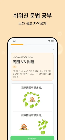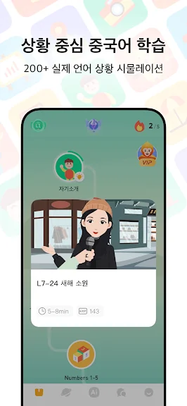 앱을 실행하면 단계별 학습이 시작됩니다. 중국어의 발음과 읽기 규칙을 익히고, 시각적 이미지와 함께 단어를 암기하며, 실제 대화에서 자주 사용하는 문장을 연습할 수 있습니다. 단순한 암기가 아니라 듣고 말하며 익히는 체계적인 학습 방식을 제공합니다.